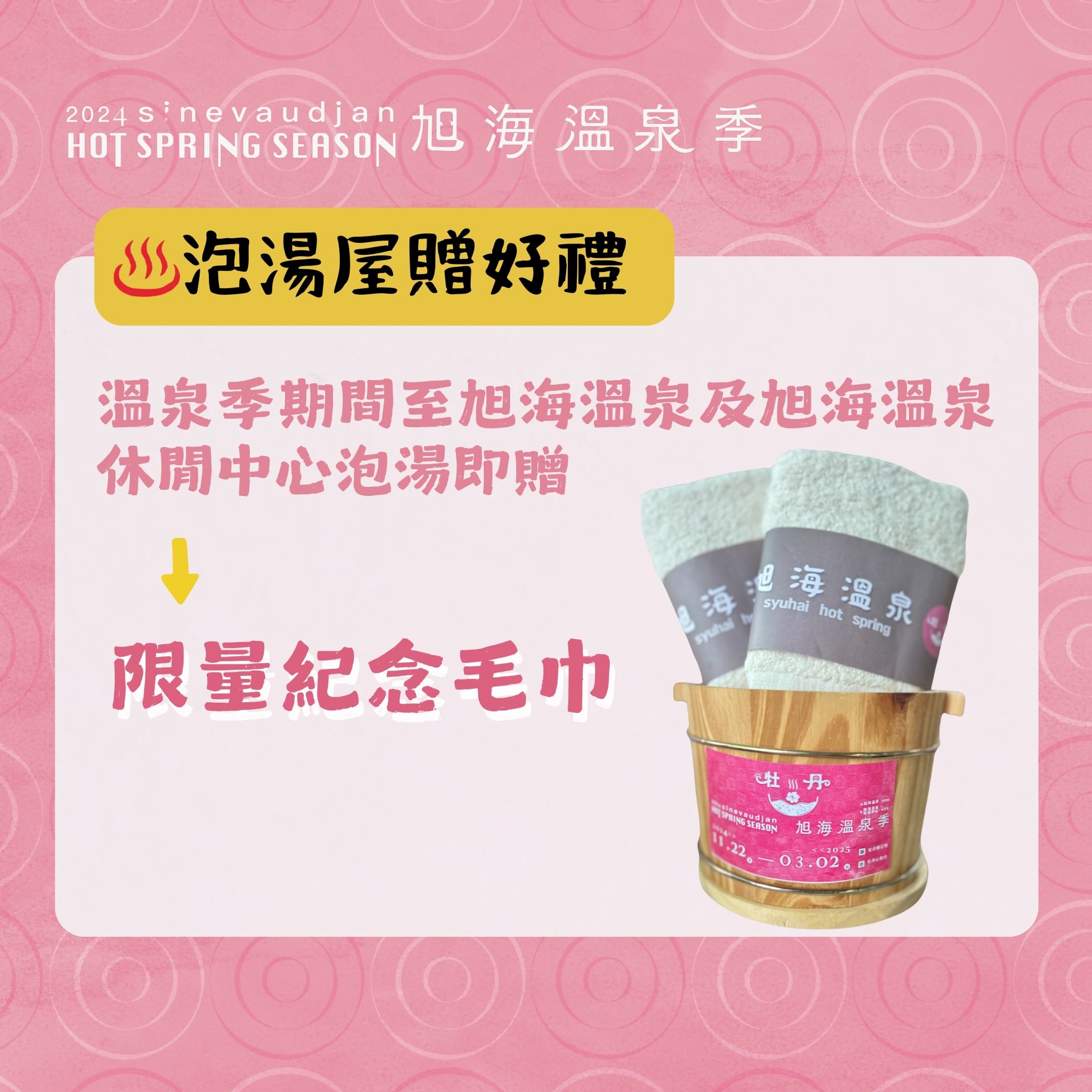 ㊀ 到旭海溫泉湯壹館、湯貳館泡湯,即贈「牡丹湯紀念毛巾」!