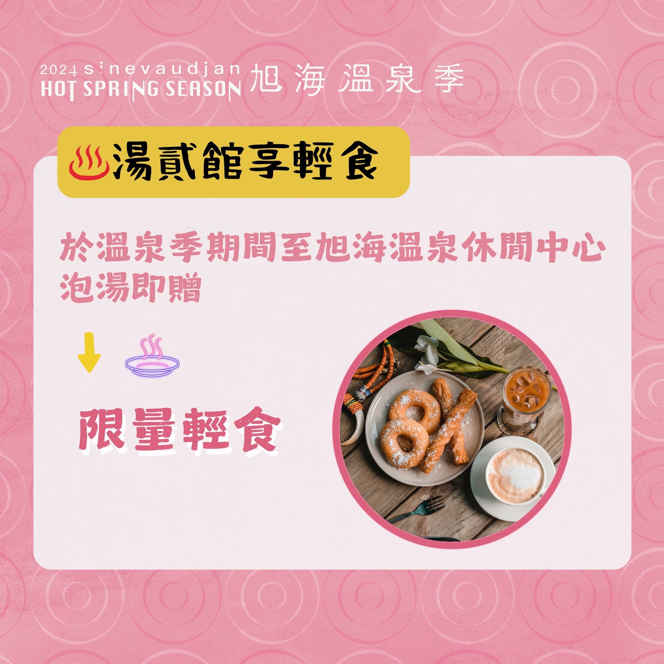 ㊁ 至湯貳館泡湯再送輕食,每週限量!