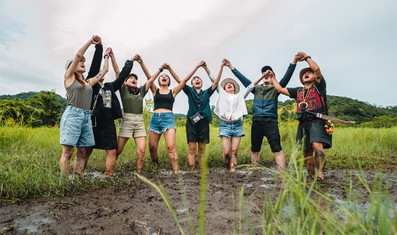 跟隨解說員的腳步,光著腳ㄚ踩在充滿彈性的水草上,透心涼的泉水讓人暑氣全消,隨著草原起伏律動,就像在彈簧床跳舞般新奇有趣。久違的童心,總在身上沾滿泥土、驚呼連連的歡笑聲中,獲得徹底釋放。