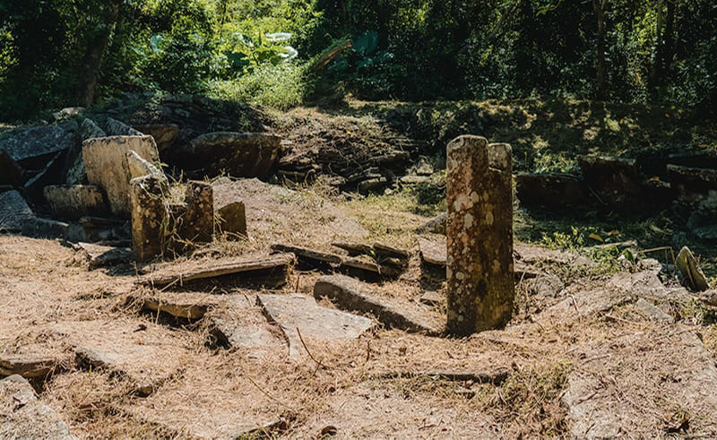 層層疊疊、頹圮斑駁的石板,沿著山階鋪展開來,依稀可見錯落有致的聚落規模。在靜謐中度過風雨、走過時代,無聲訴說著昔日的風華。